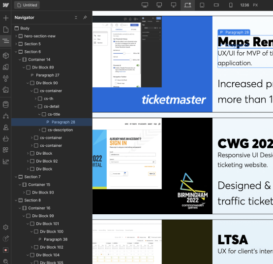 • No-code development (webflow, framer, squarespace, shopify, etc.)